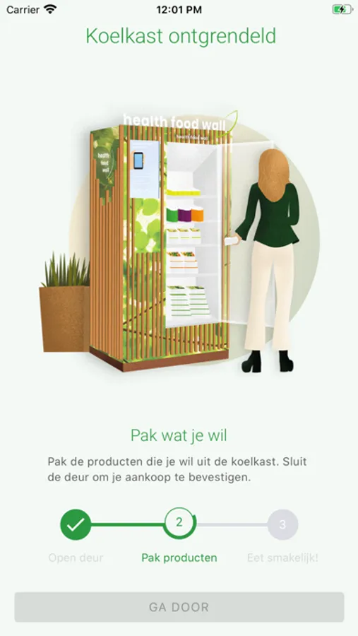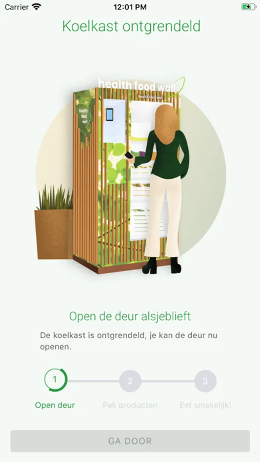Use this app to unlock your Health Food Wall Intelligent Fridge. Using the app is simple and will provide you with a healthy and plant-based product within seconds. Create your account and fill in your payment details one time only for unlimited access. With your account you can use your phone to unlock the fridge, filled with healthy and delicious vegetarian and vegan products! The app will give you all the information you need after purchase, like receipts, purchase history and more. Enjoy the fast and easy solution and delicious products of Health Food Wall!