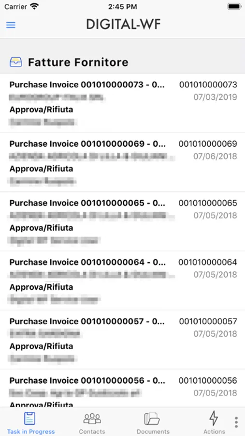 L’App di DIGITAL-WF consente di gestire e consultare ovunque ed in qualsiasi momento tutti i documenti archiviati nel client Windows di DIGITAL-WF ed i processi ad essi collegati.