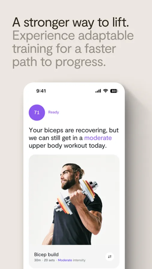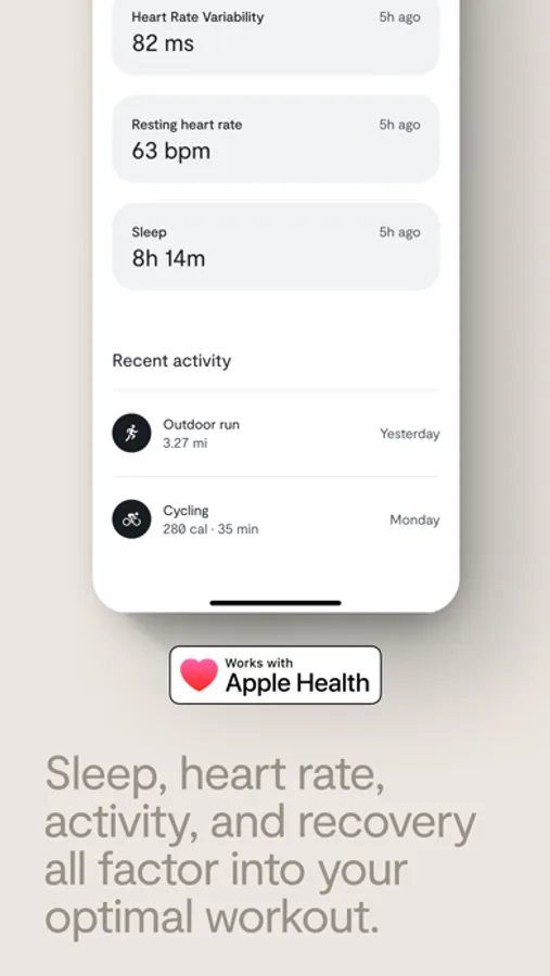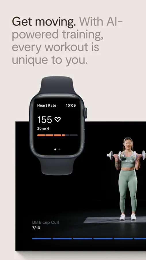 Sleep. Heart rate. Activity levels and recovery time. It all factors into your optimal workout. Tempo syncs with your health data to adapt your daily training focus to what your body will respond to best that day, modifying intensity, duration, and muscle group focus.