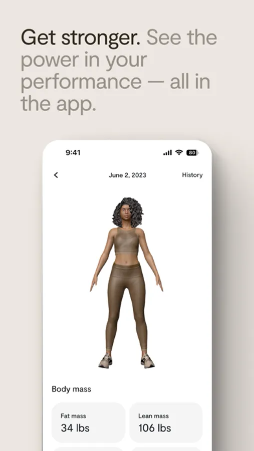 Go beyond what the mirror shows with 360-degree body scans that give in-depth details into your muscle makeup. With no additional equipment needed, scans are easy to take from home and process in minutes. You’ll see measurable differences as your training progresses.