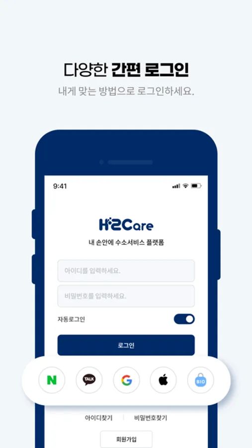 회원가입 후 내게 맞는 방법으로 간편하게 로그인할 수 있어요.