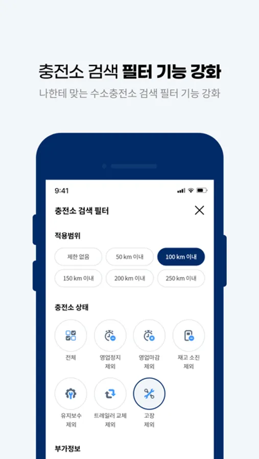 나한테 맞는 수소충전소 검색 필터 기능 강화