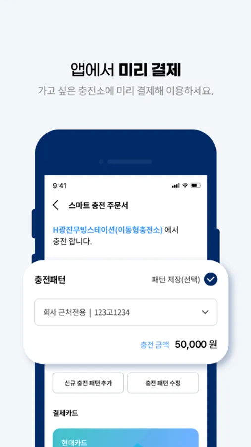 내 주변이나 가고 싶은 충전소에 미리 결제해 이용하세요.
