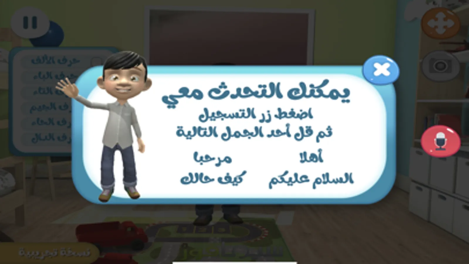 يمكنك أيضاً التحدث بالصوت مع الشخصية الافتراضية الموجودة في المشهد من خلال جمل مثل "السلام عليكم, مرحباً, أهلاً, كيف الحال" و مشاهدة رده عليها بالإضافة إلى إمكانية نطق الحروف و الكلمات التي تعثر عليها في المشهد.