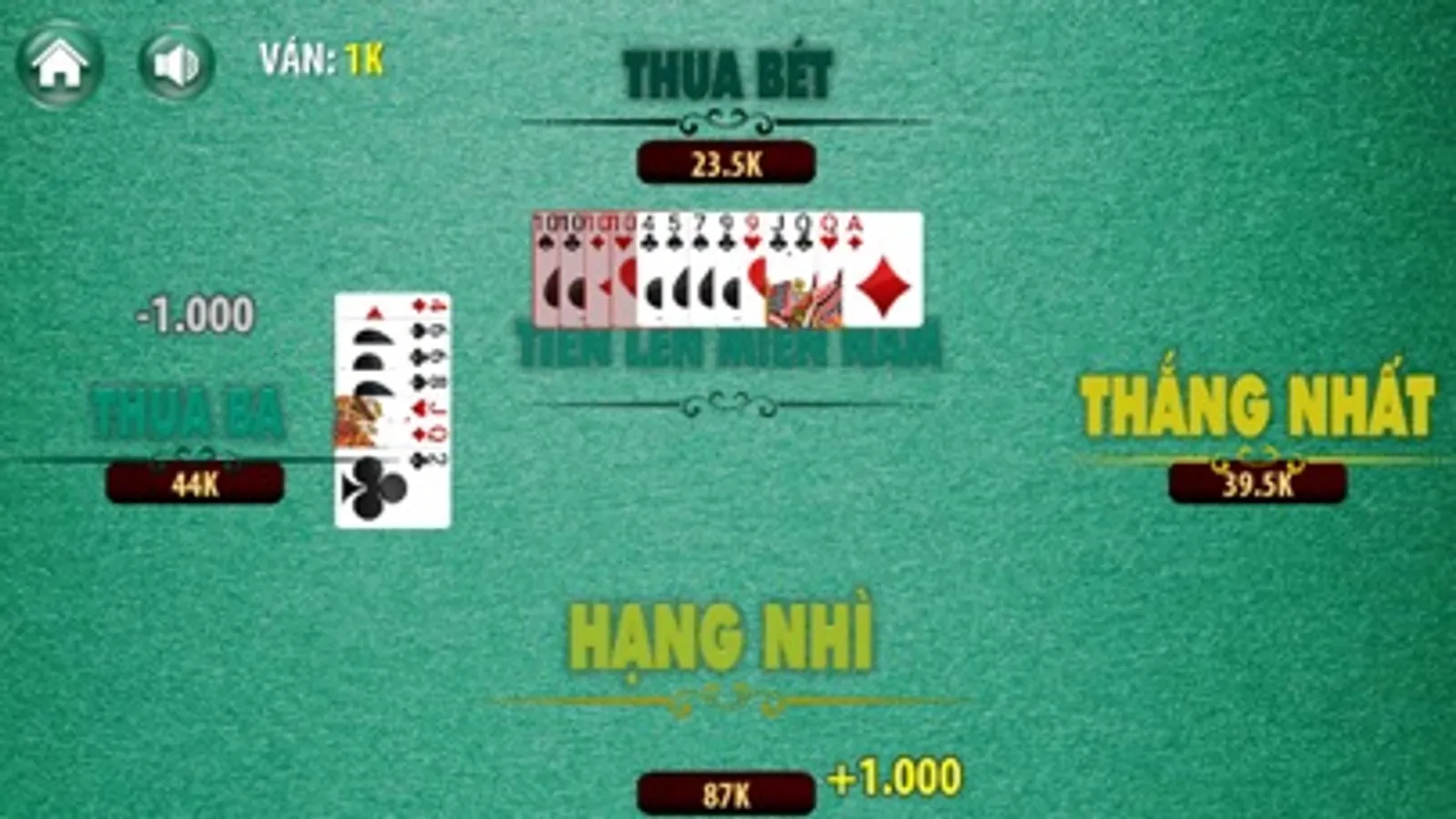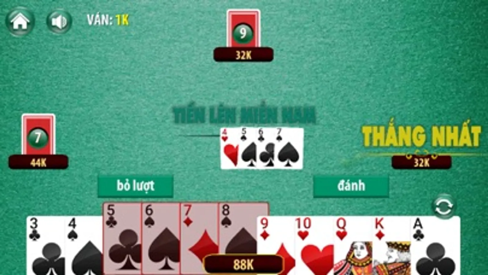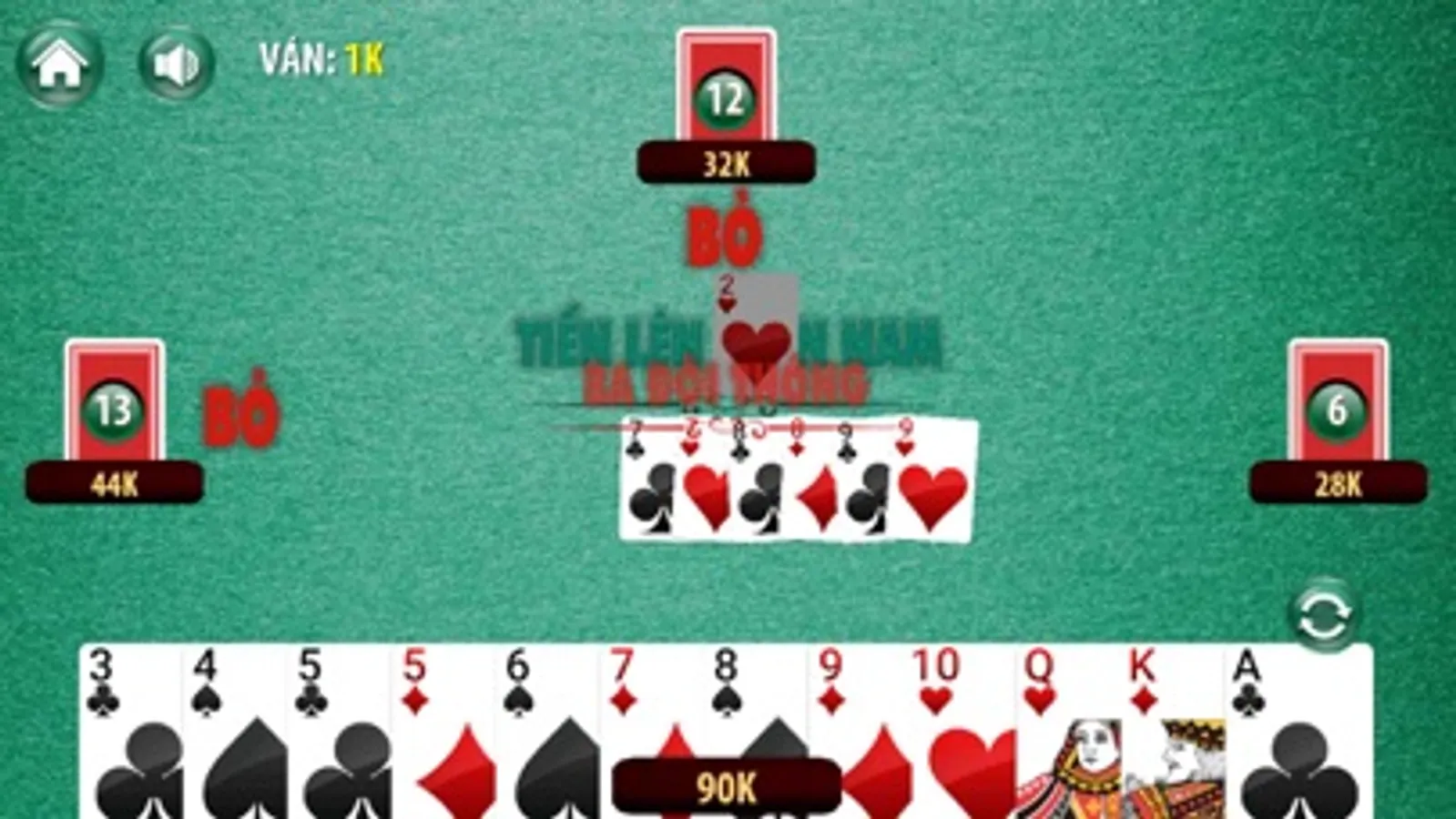 + Tiến lên miền nam (đánh tiến lên miền nam): đánh kiểu 4 người chơi rặc chất miền nam nông dân, đánh bài tiến lên offline cũng vui đấy, không như ai nghĩ.