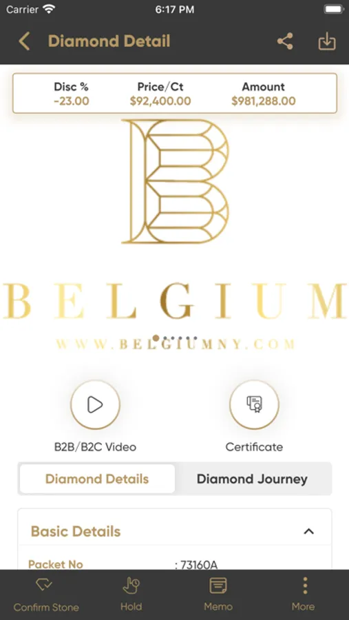 • DNA: This feature will enable you to get all the possible details of the diamond you would need.