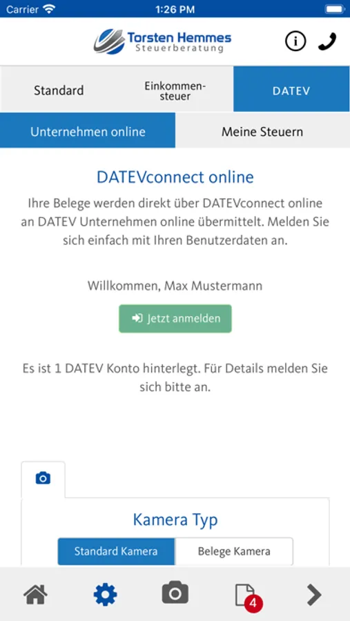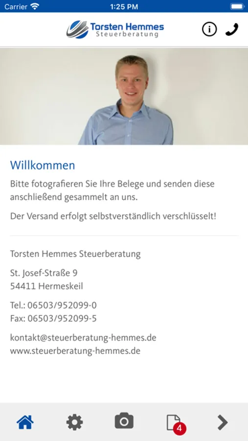 Mithilfe dieser App können Belege, Dokumente und andere Schriftstücke schnell, sicher und komfortabel an die Steuerberatung Hemmes senden.