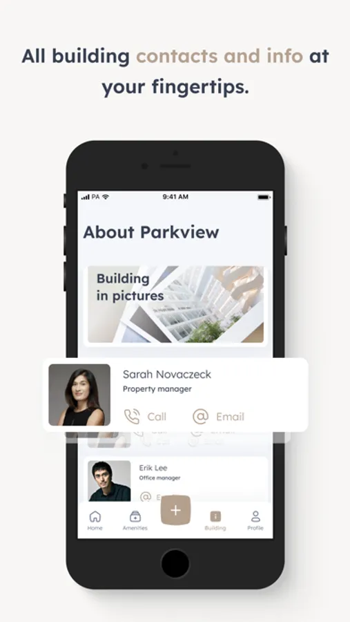 This application is intended not only for employees that work in Parkview but for their visitors as well. Important information about the building is organized on the dashboard, which dynamically changes throughout the day. The app offers more functionality including forums, ability to request maintenance, events, information about companies in the building and about the building itself where you can find important contact, guides and documents.