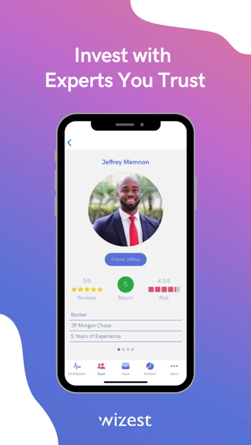 Each Wizest Expert is an experienced investment or finance professional, carefully curated and vetted one-by-one by our team, and accredited with the all required exams and active licenses. Each has a unique investing philosophy, together offering a wide variety of strategies to fit your style.