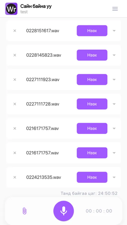• Хөрвүүлэх: Та ачаалсан бичлэгээ сонгоод хөрвүүлэх гэсэн товч товшсоноор яриаг бичвэр рүү автоматаар хөрвүүлнэ.