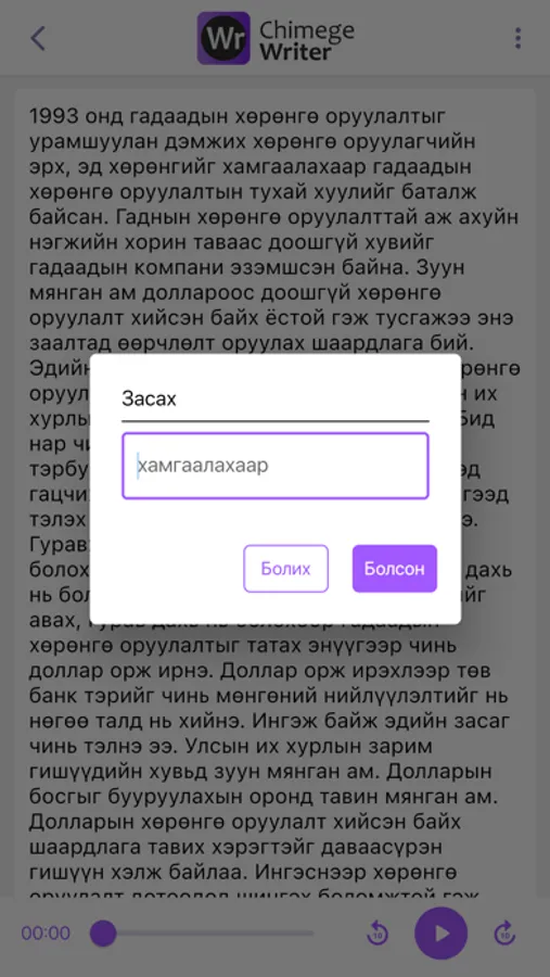 • Засварлах: Автоматаар хөрвүүлсэн бичвэрээ бидний бүтээсэн засварлагчийг ашиглан маш хялбархан хянаж боловсруулна.