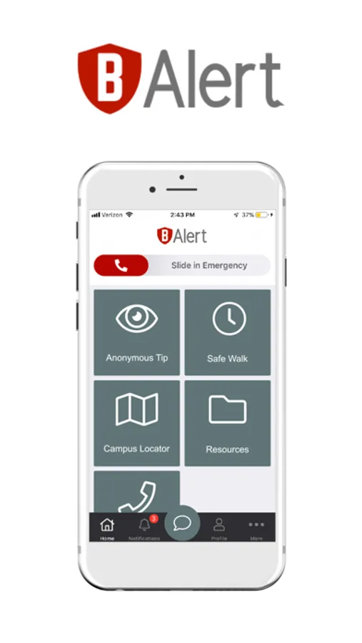 The bAlert Mobile Safety App is a versatile and customizable personal safety communication tool. The app features an emergency slider to easily place a call to first responders. This personal safety tool uses geofences to determine whether or not the user is currently within jurisdiction of their local emergency services.