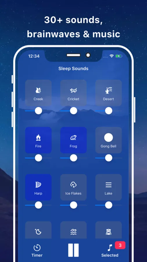 30+ relaxing sounds, meditation music and ambient sleep sounds for you to customize your own soundscapes: