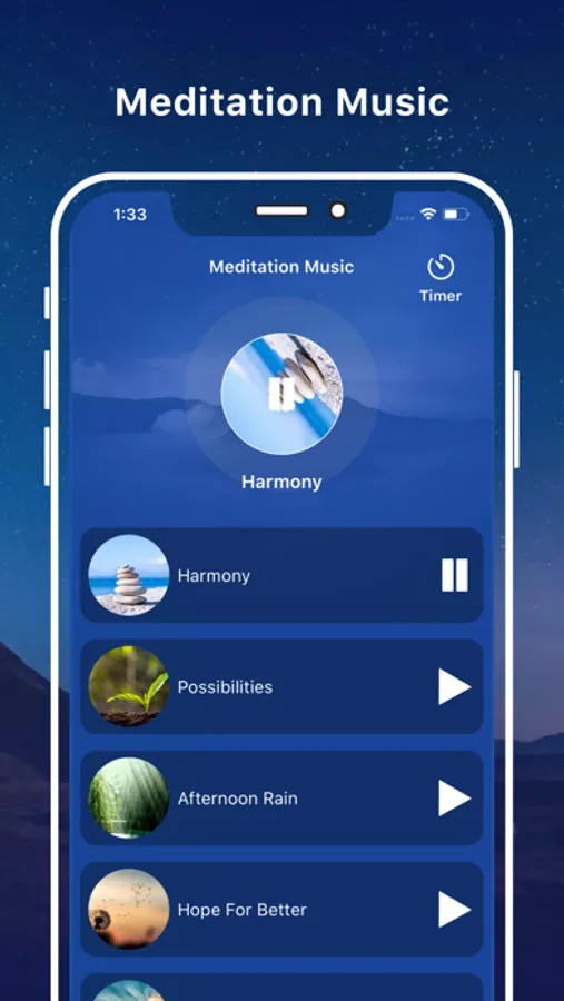 Meditation Music contains 17 different free and high quality meditation melodies and no network required.