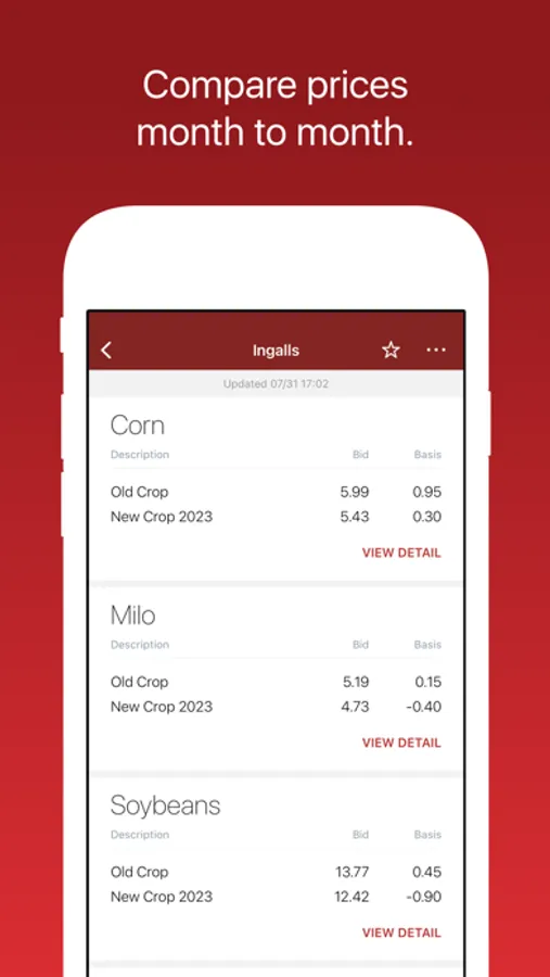 Cash Bids: View a location's cash bids in real-time