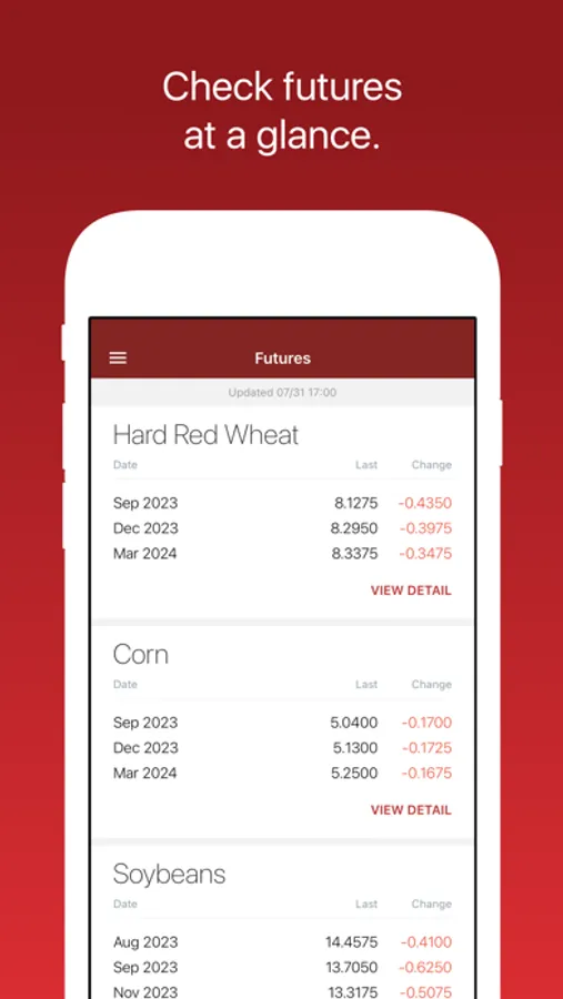 Futures: See Grains, Feed, Livestock, and Ethanol futures listed in order of your preference