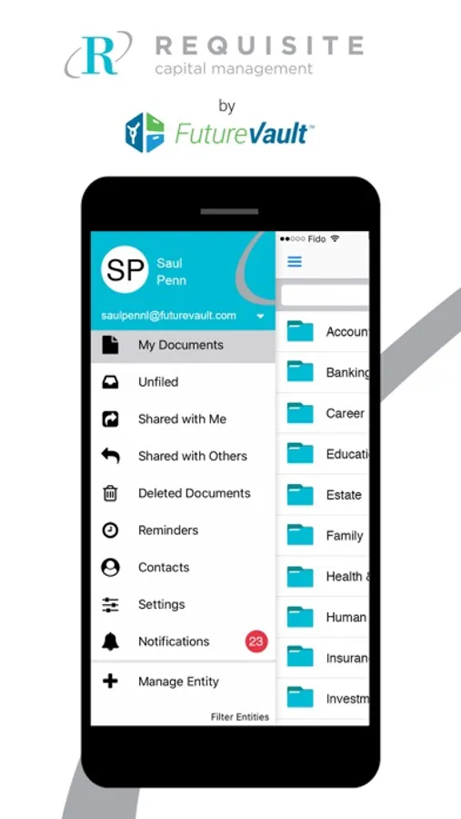 Now you can securely access your Requisite Capital Management vault-- an encrypted document management platform that enables you to collectively access and manage your important documents. Further, you can receive and share documents directly from and with the Requisite Capital Management Team. Powered by FutureVault, the Requisite Capital Management Vault offers bank-level security with end-to-end encryption, multi-factor and biometric authentication in addition to a proprietary security layer.