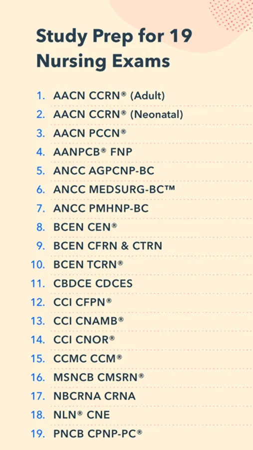 Nursing Pocket Prep gives you access to study prep for 19 different nursing exams all in one place, with 500-1050 practice questions for each exam.