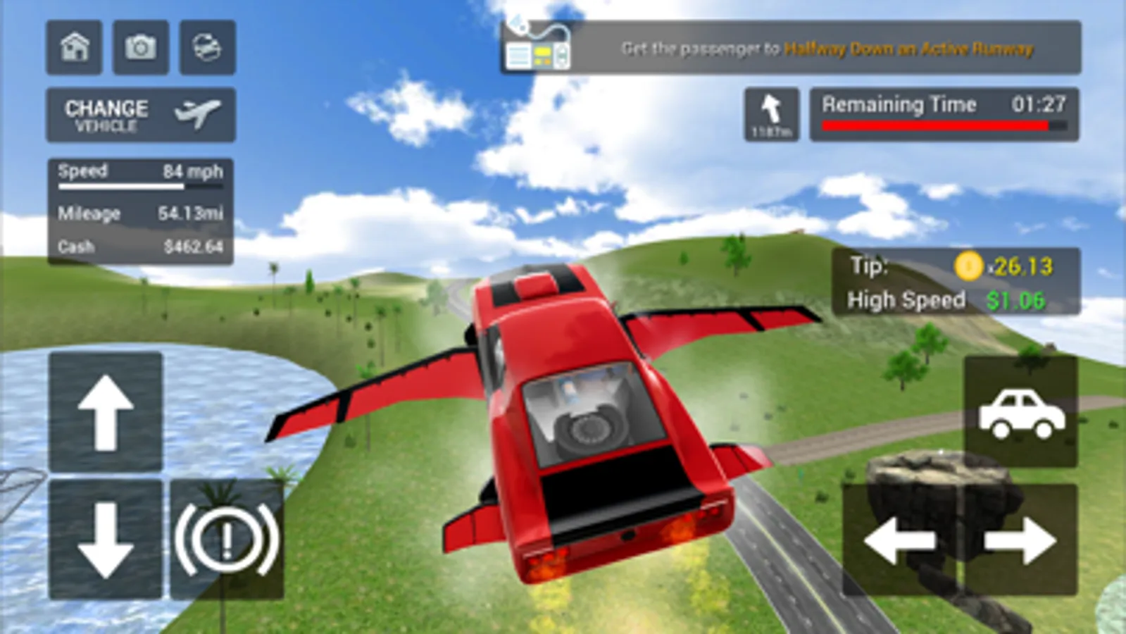 Drive hi-tech flying cars in the all-new exciting car driving simulator game. Drive fast cars down city streets or fly high in the sky above the city like an airplane. Help pick up taxi fares in the latest in taxi driving experiences, fly passengers in style in the best of flying cars. The latest in driving and flying simulations with one of the best flying car games on the store!