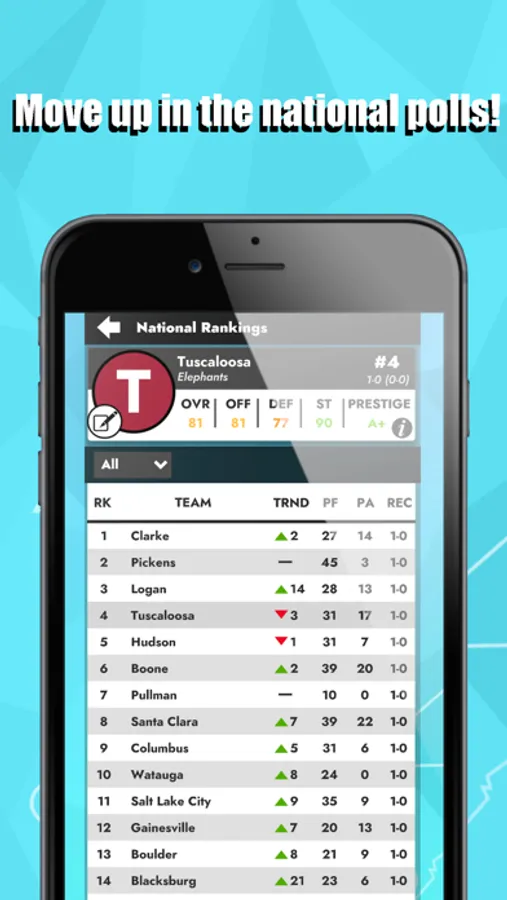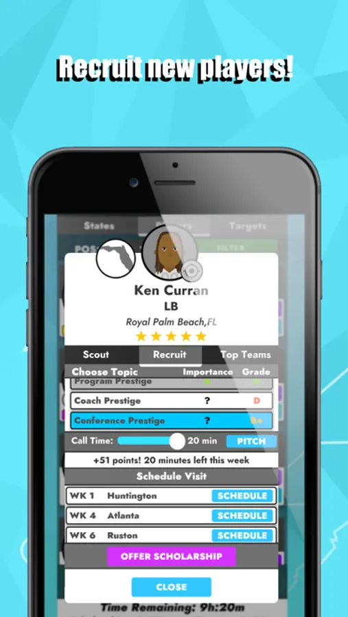 College Football: Dynasty Sim puts you at the helm of a college football team. Do you have what it takes to build your team from the ground up, from a cupcake to a perennial powerhouse? Choose a College Football team, customize your non-conference games, make roster changes, scout, and recruit new players to see if you have what it takes to win Conference Championships, Bowls, or even compete in the playoffs and win the National Championship.