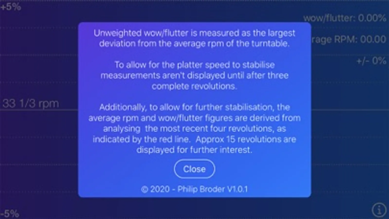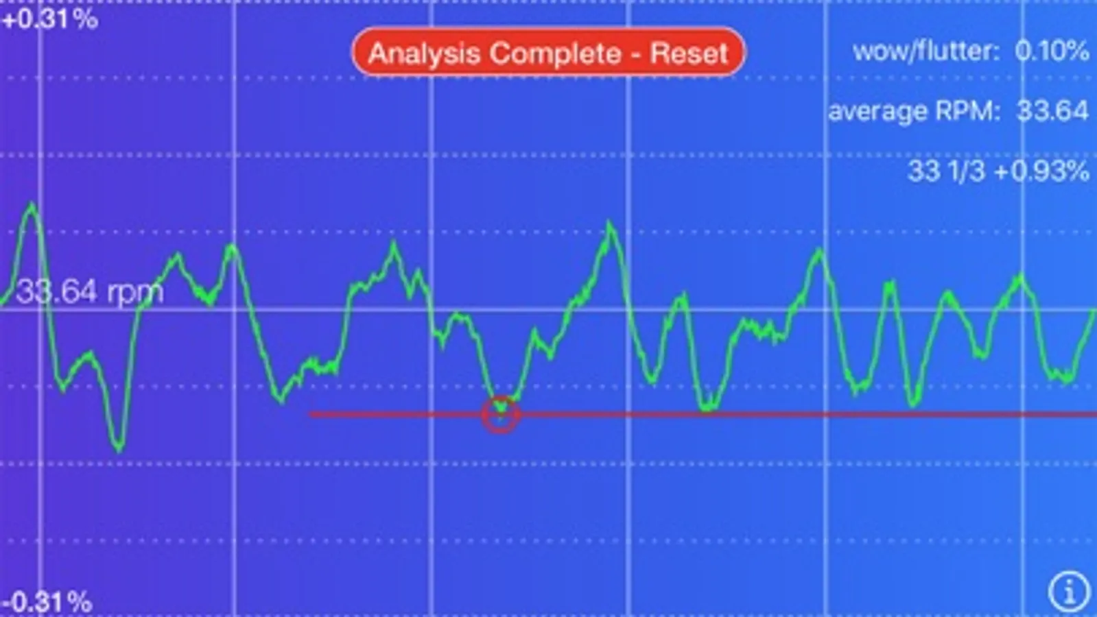 The most detailed Turntable Wow & Flutter display and analysis available on an iPhone.