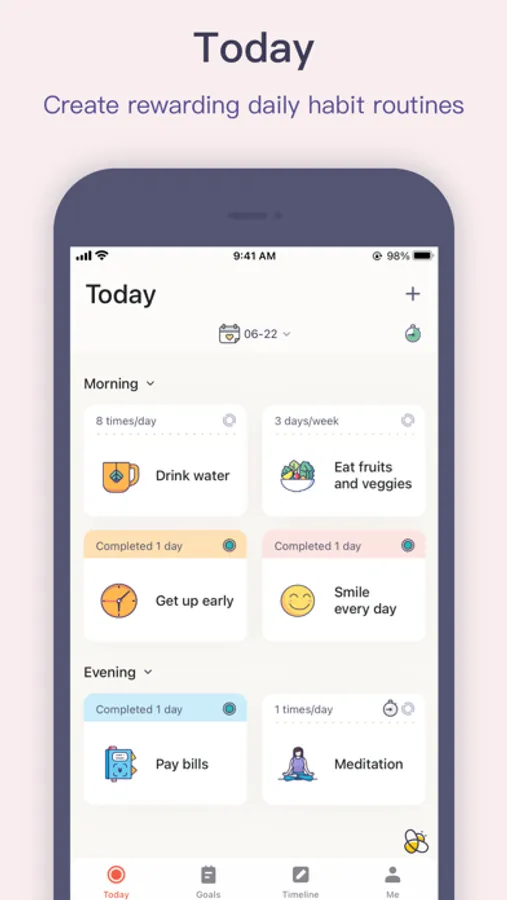 The clear and beautiful interface is intuitive and easy to use and will help you stay focused and determined to build new habits and reach new goals.