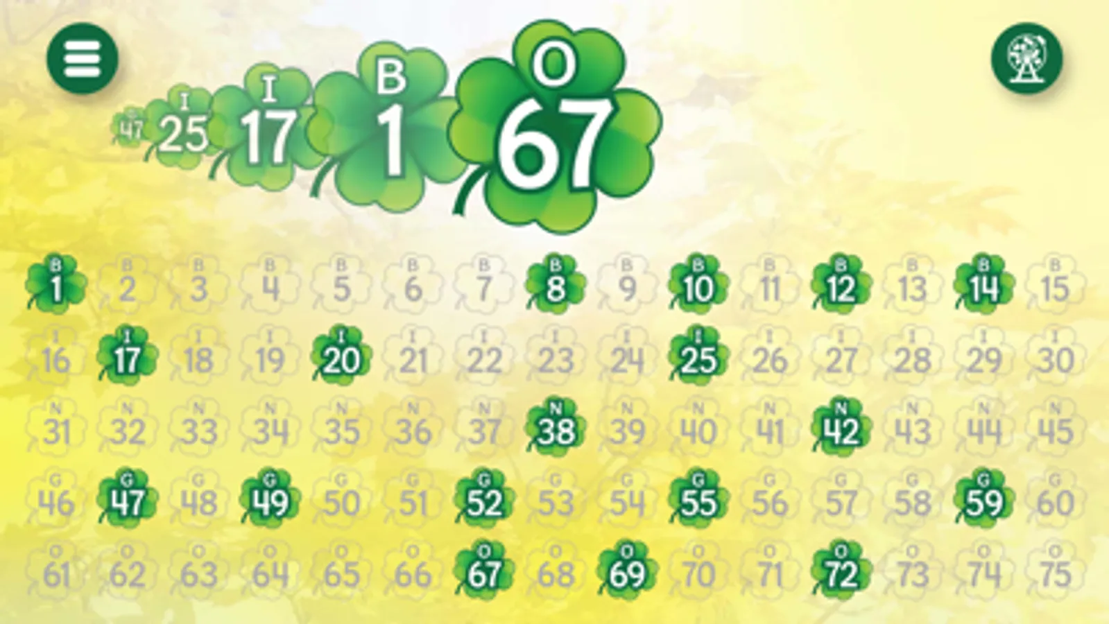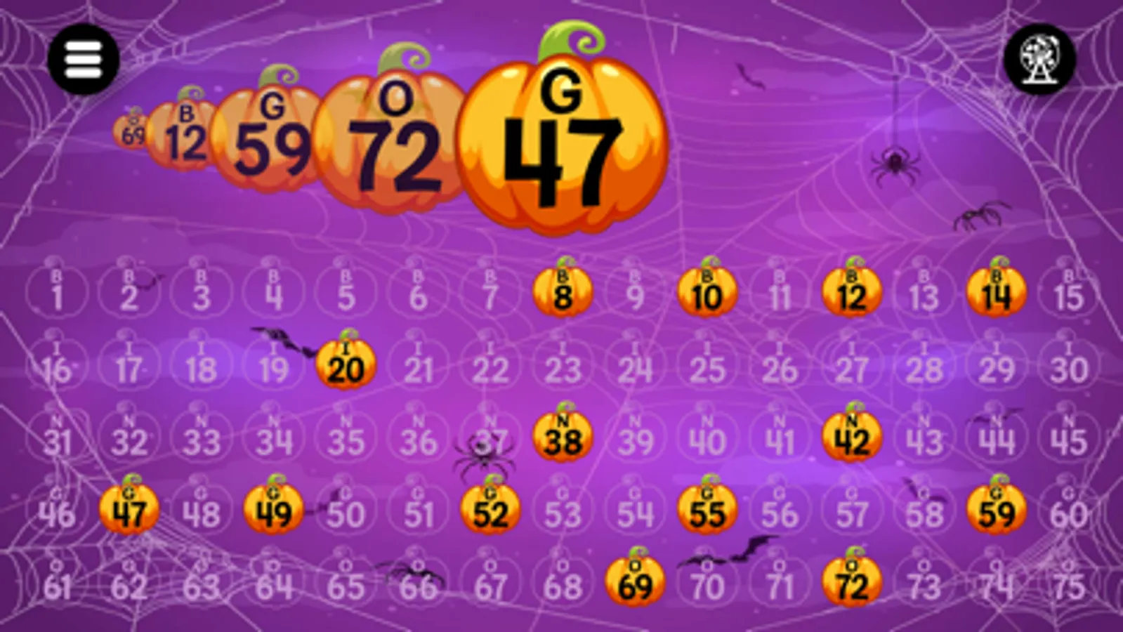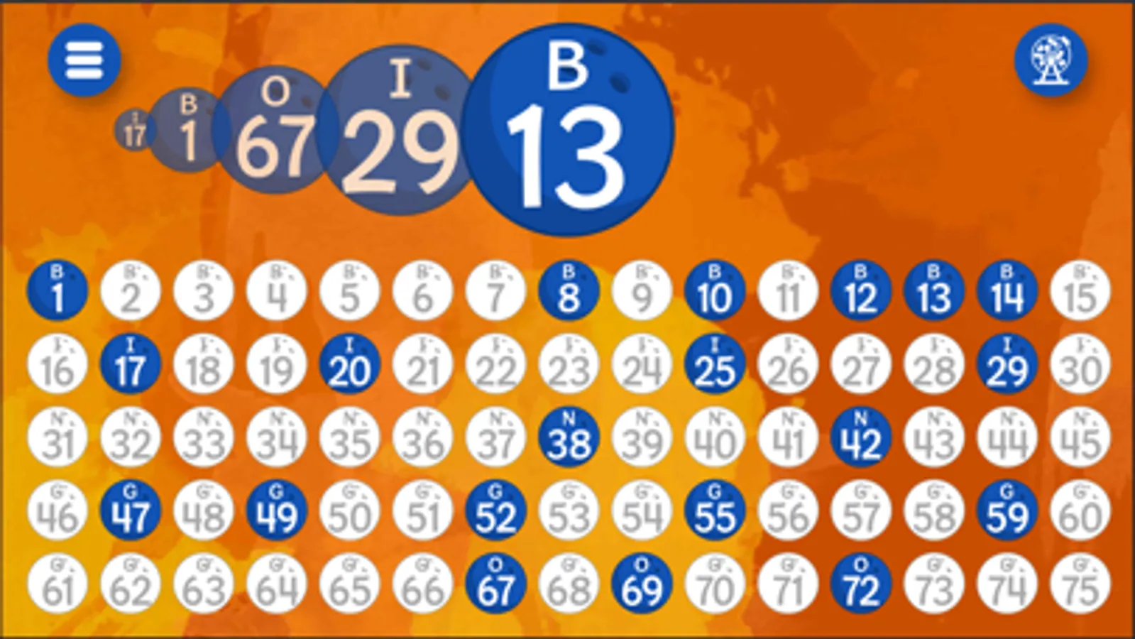 Bingo Caller+ adds seasonal and holiday themes for Christmas, St. Patrick's Day, Valentine's Day, New Year's, Halloween, springtime, bowling. It's designed to display called Bingo numbers for a family game night, small gathering, or large group Bingo game. You can mirror the screen to an Apple TV, output to a projector via HDMI, share the app window to a group video app, or just show it on from your device. You can have the app pick random numbers or tap and untap numbers chosen from your Bingo ball picking cage. The app can optionally say the numbers aloud. Controls are simple -- tap bingo balls or tap the random button.