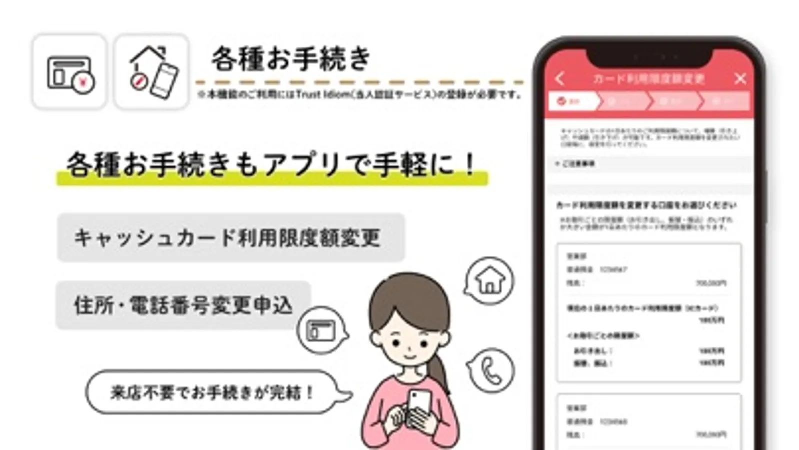 【対象取引】振込、定期預金取引(預入・解約)、住所・電話番号変更申込、キャッシュカード利用限度額変更