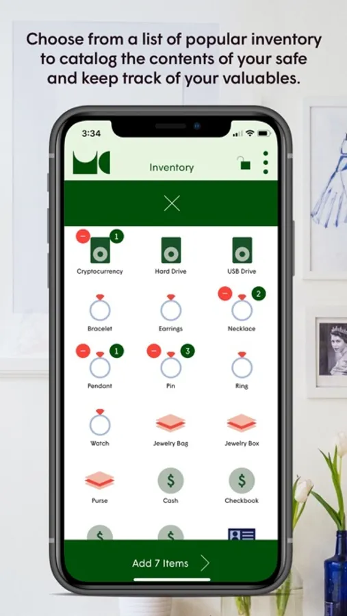 - Choose from a list of popular inventory to catalog the contents of your safe and keep track of your valuables