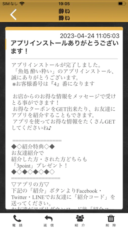 魚処酔い粋いのアプリをSNSを通じてお友達に紹介する事ができます。
