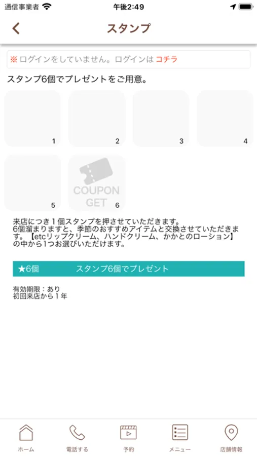 ご来店スタンプをためるとお得なクーポンが発行されます(ご利用条件がある場合がございます)