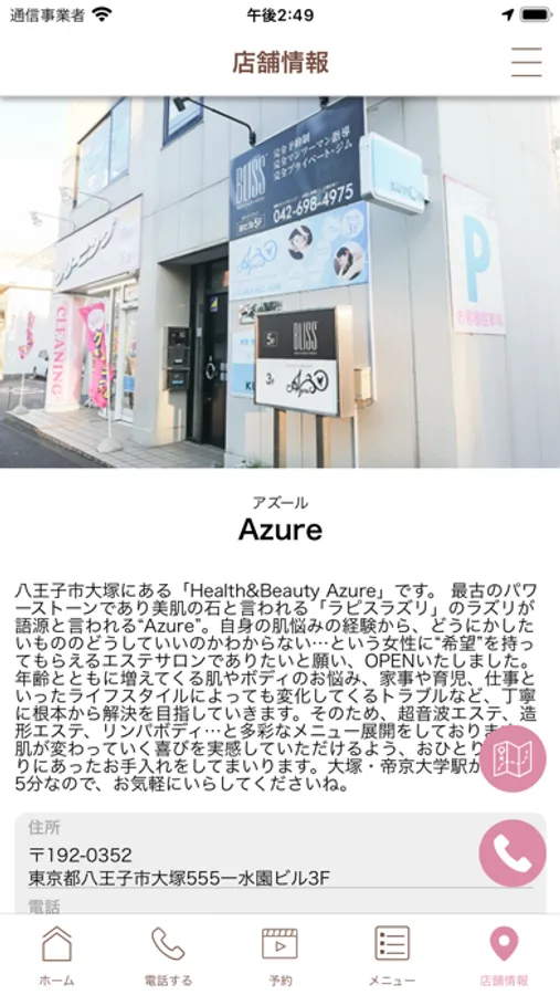 店舗のマップが表示され、地図アプリとも連携しているので、初めてのご来店の時も簡単に見つけることができます。