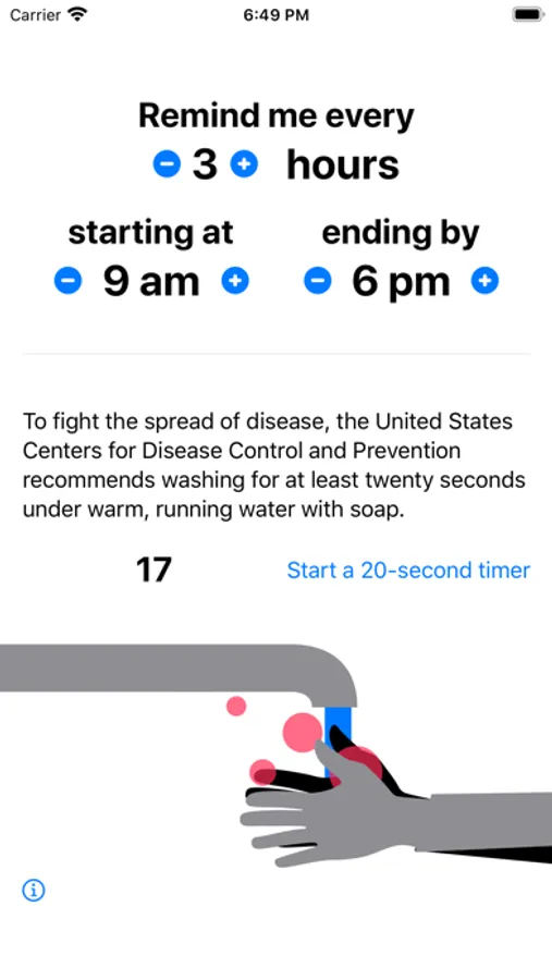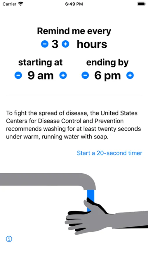 • Start a handwashing timer and see just how long you should be scrubbing right from a reminder notification.