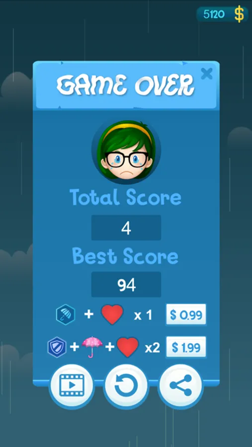 To help you get the girl as far as possible, the adventure flying game offers you the chance to use power-ups. There are two power-ups, the shield to protect the girl for few milliseconds and a big umbrella to increase the size of your umbrella for few milliseconds. Longer you last in the endless arcade, higher the scores for you. See how far you can get and for how long can you protect the girl from the rain drops to win the highest scores.