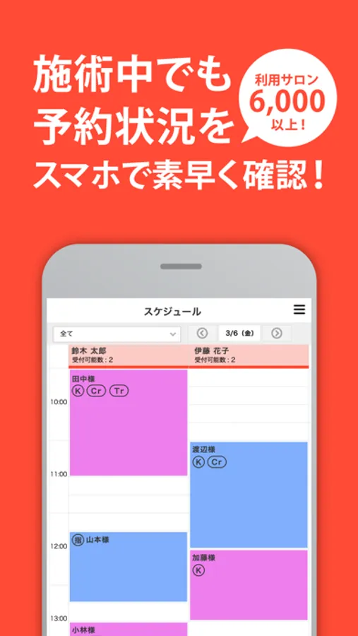 スケジュール画面で予約を確認。予約の変更や登録も可能。