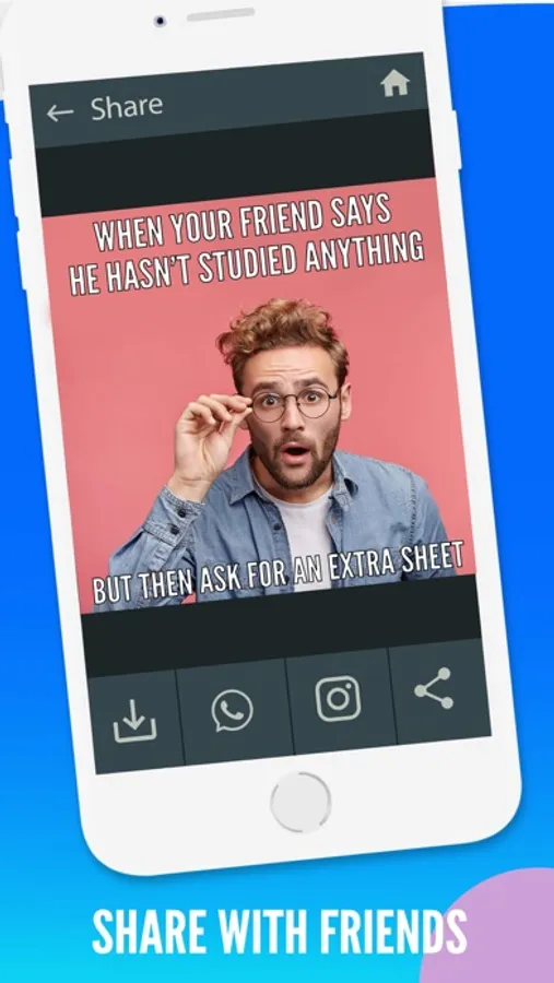 Dank Meme Generator allows you to make memes in a few seconds, you just need to import an image from the gallery and add funny text on the image. Our super cool text font converts image into a sharable meme. Add your own text and share it all on the internet. Friends meme creation is quite possible and easy with our free dank meme generator app.