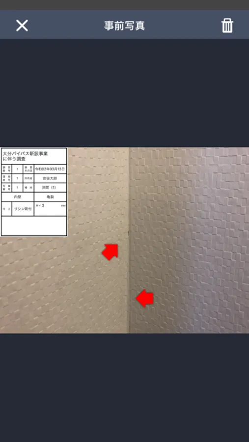 撮影した写真に後から白板画像を合成するものではありません。調査書のダウンロード時に白板付きの画像と、白板なしの画像の両方の写真もダウンロードされますので、信憑性を問われた際にも問題ありません。