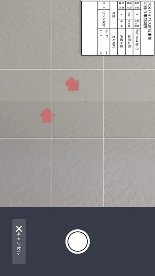 損傷写真・測定写真とは別に、白板を撮影画面上に表示しない現況撮影に対応しています。