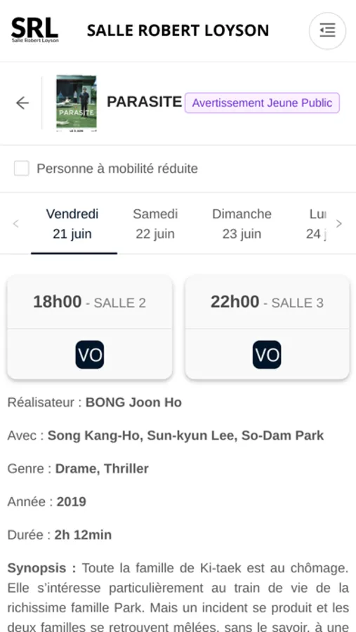 L'application d'achat de place de cinéma du cinéma Robert Loyson au moule.