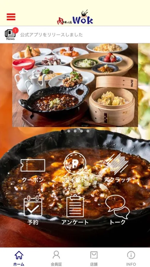 肉をメインにした中華を提供する肉中華バルWOK (ウォック)の公式アプリが登場しました!