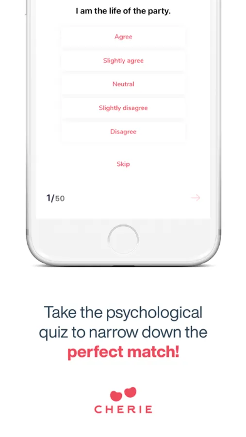 Using dating apps involve swiping through tons of profiles, shown without scientific algorithm or logic. This activity consumes a lot of person's mental energy, and thus these dating apps feel like a part-time job. On the Other hand, Cherie is straightforward to use and relieves users of stress instead of giving them one. Now finding the right user for meeting and chat is made easy by taking Ocean Test in which you will answer some simple psychological questions. An algorithm process these questions and will help you find people who are more likely to like each other and have an actual future together.