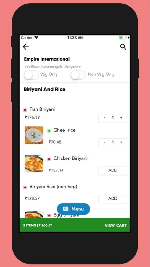Hotel Empire was once a family partnership business concern but now has transformed to a Private Limited Company. It is one of the leading chains of non-vegetarian restaurants, hotels and serviced apartments spread over different parts of Bangalore, India. Nicknamed as the Taste of Bangalore, the restaurants of Hotel Empire group are the most sought after eateries in the Garden City, particularly by the late night crowd. It's mouthwatering dishes include the Empire special chicken kebab, biriyani, coin parotta, ghee rice and other Indian cuisines.