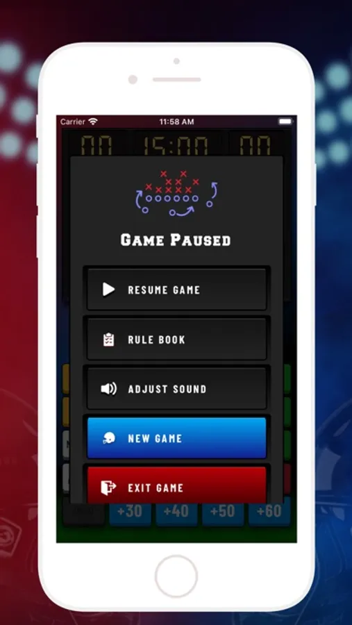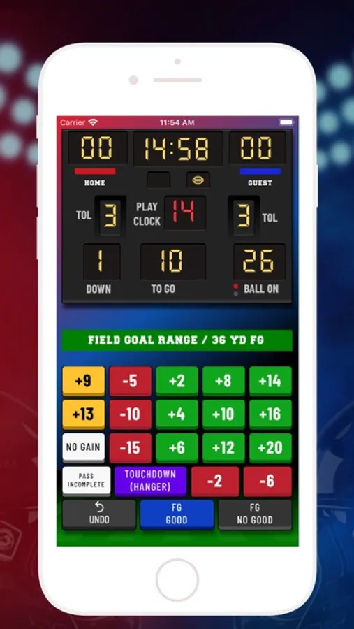 The Fozzy Football™ mobile app is intended to be used in conjunction with any and all of the versions of a physical Fozzy Football™ game board, manufactured and sold by Omnibron Incorporated. Used in tandem with the game board, the mobile app provides users with game-tracking functionality and is designed to track player’s field position, game situation, and other key elements such as time on the clock, timeouts remaining, score, etc. There is an announcer that provides real-time audio feedback to users based upon game play outcomes. Configurable settings permit users to turn on/off features like the play clock, and control the volume levels of audio functions like crowd noise and play-by-play commentary.