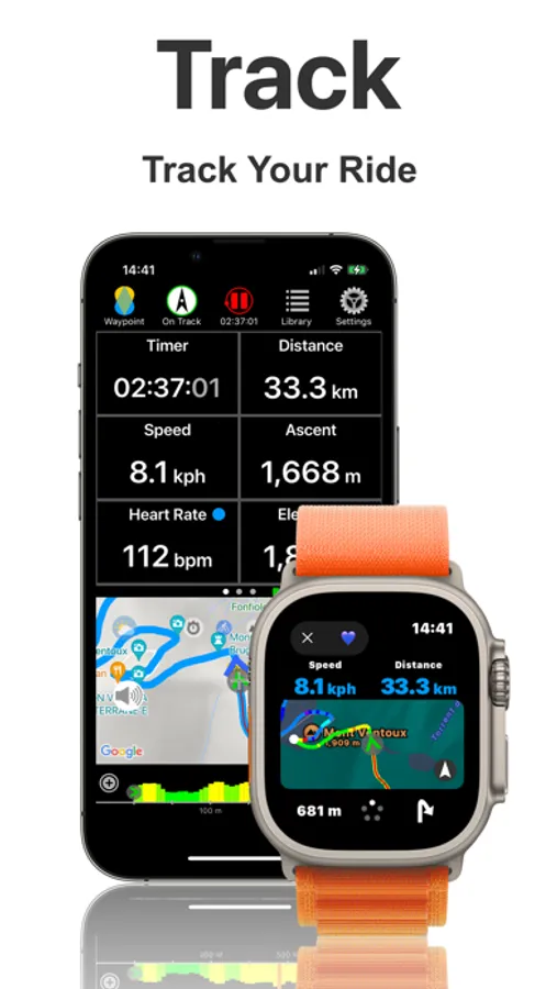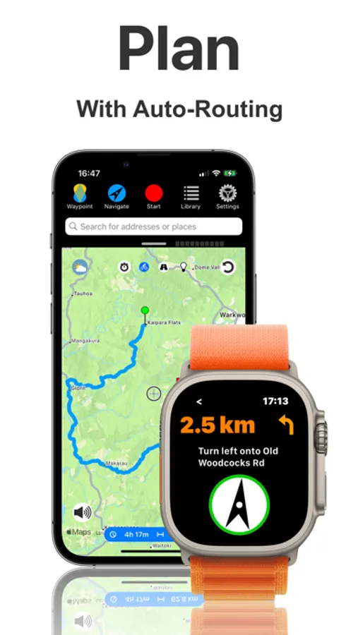 2. Bike Navigation - Navigate your route by using integrated Apple or Google Maps, offline maps*, turn-by-turn directions, Slope Forecast*, and voice instructions. Create custom routes with our built-in Route Planner, save them for offline use, and send them to the Navigr8 watch app. Place waypoints anywhere to raise voiced notifications when you pass them. Automatically enhance any track with turn directions.