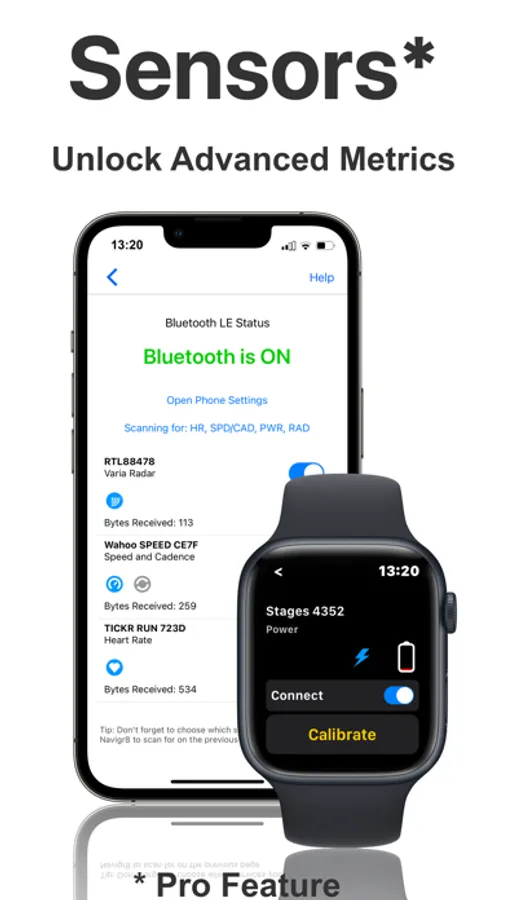 4. Use one or both devices - Navigr8 works on iPhone, Apple Watch, or iPhone + Apple Watch, and you can sync your settings and share sensors between devices. The Watch app can run independently of the iPhone app.