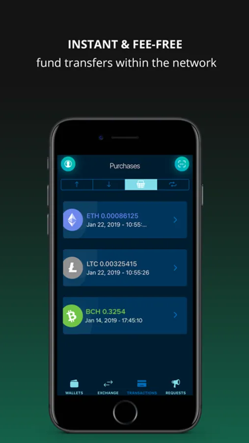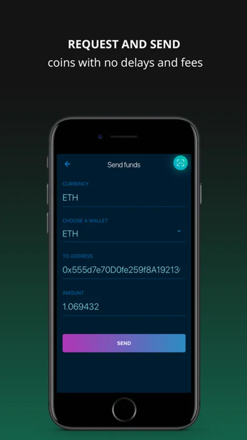INSTANT COIN TRANSFERS. Send and request cryptocurrencies with a few taps with a few quick taps.