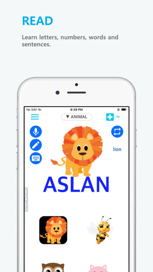 · When you press a word, letter, or number, the pronunciation of the selected learning language is heard.