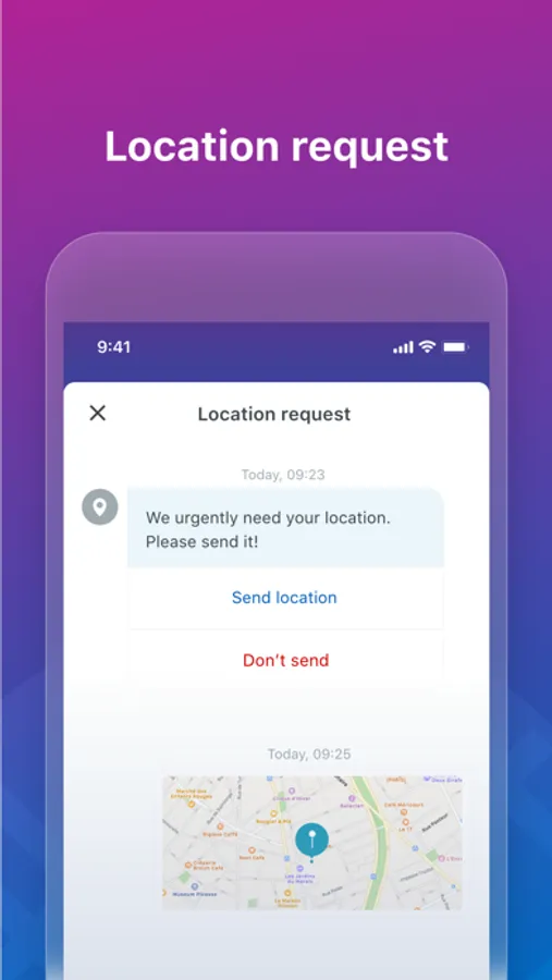 A travel manager can also request the GPS location from a traveler. If the traveler agrees, his location will be sent back to the travel manager.