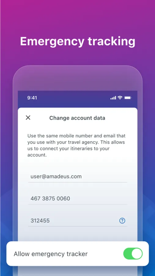 Before a traveler can start using the application he needs to register. The app needs the mobile phone number and the email of the traveler that is matching the ones used by his travel agent to create the booking(s). That way Amadeus Mobile Messenger is able to link bookings to travelers.