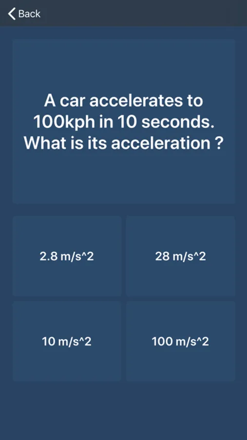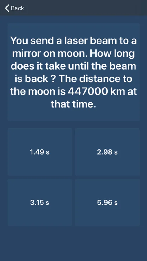 The app is completely easy and intuitive to use. It has 5 sections where questions of different subjects are presented and so you can test your knowledge.. Each test comprises 20 questions. The result is computed and shown after the test is completed. The highscore and the result of the last try is shown on the menu screen, so the app works a bit like a game...yes, studying and learning can also be fun...